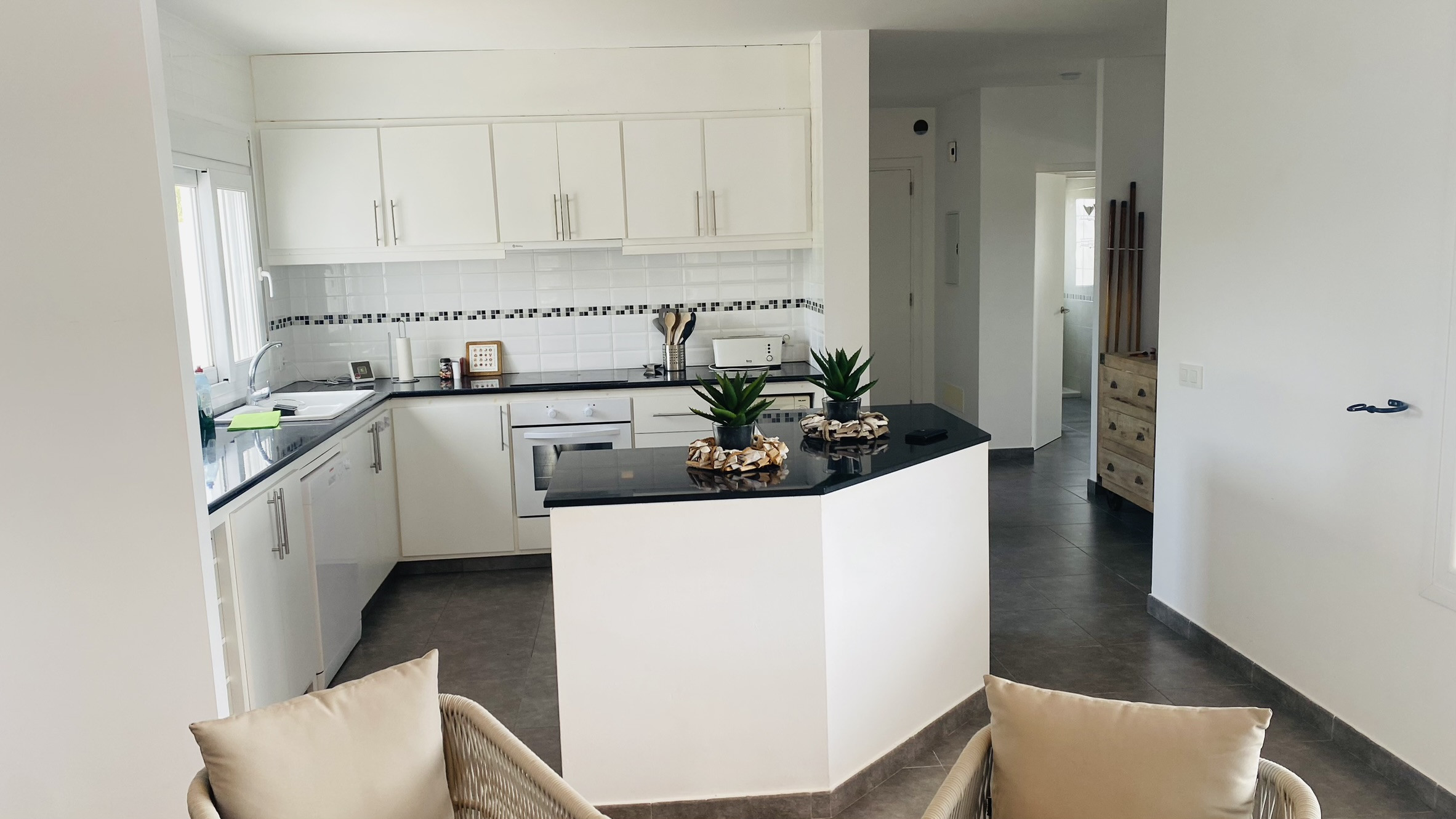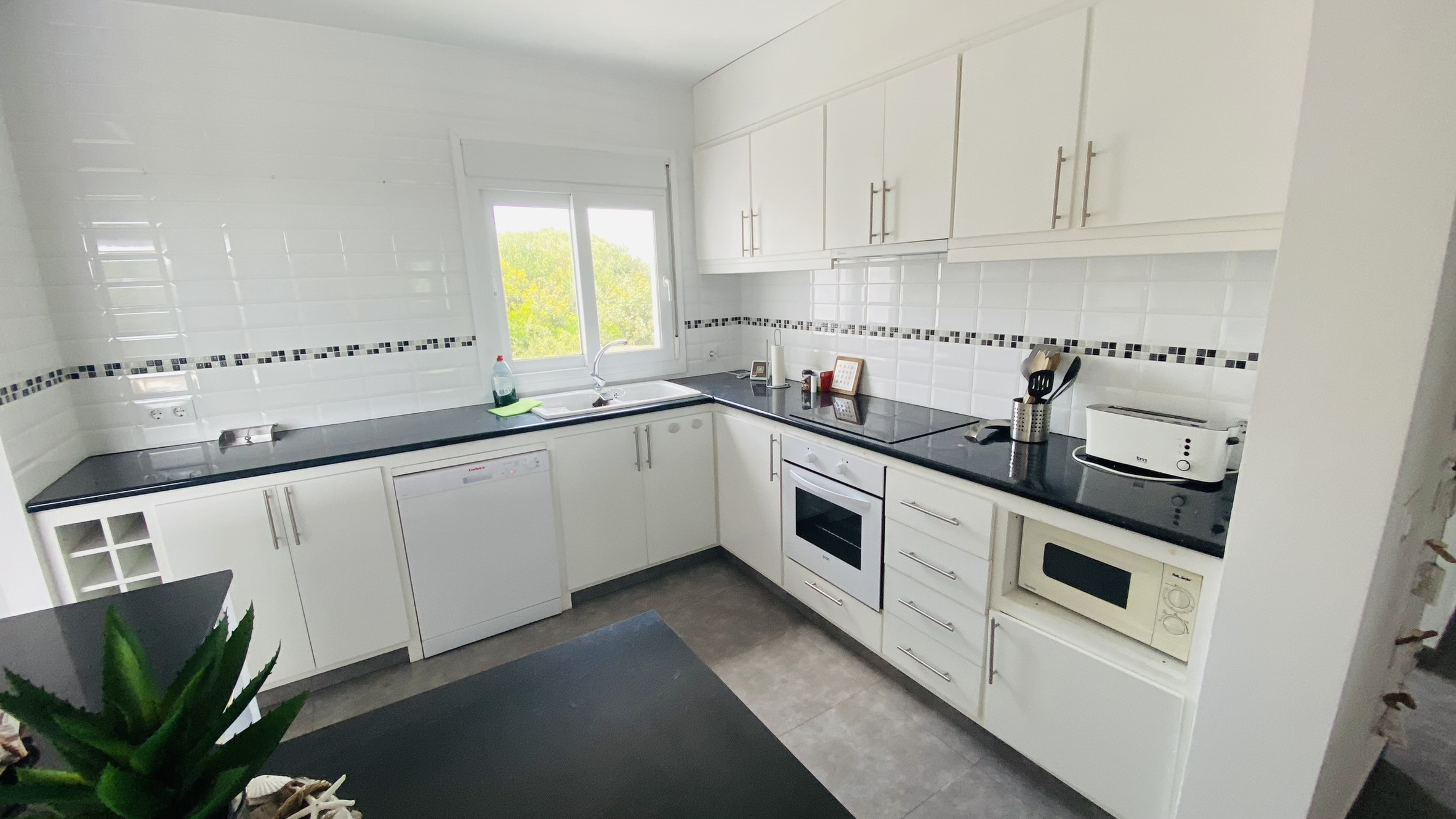 La cocina americana, de vitrocerámica, está equipada con nevera, microondas, horno, congelador, lavavajillas, vajilla/cubertería, utensilios/cocina, cafetera, freidora, tostadora y hervidor de agua.