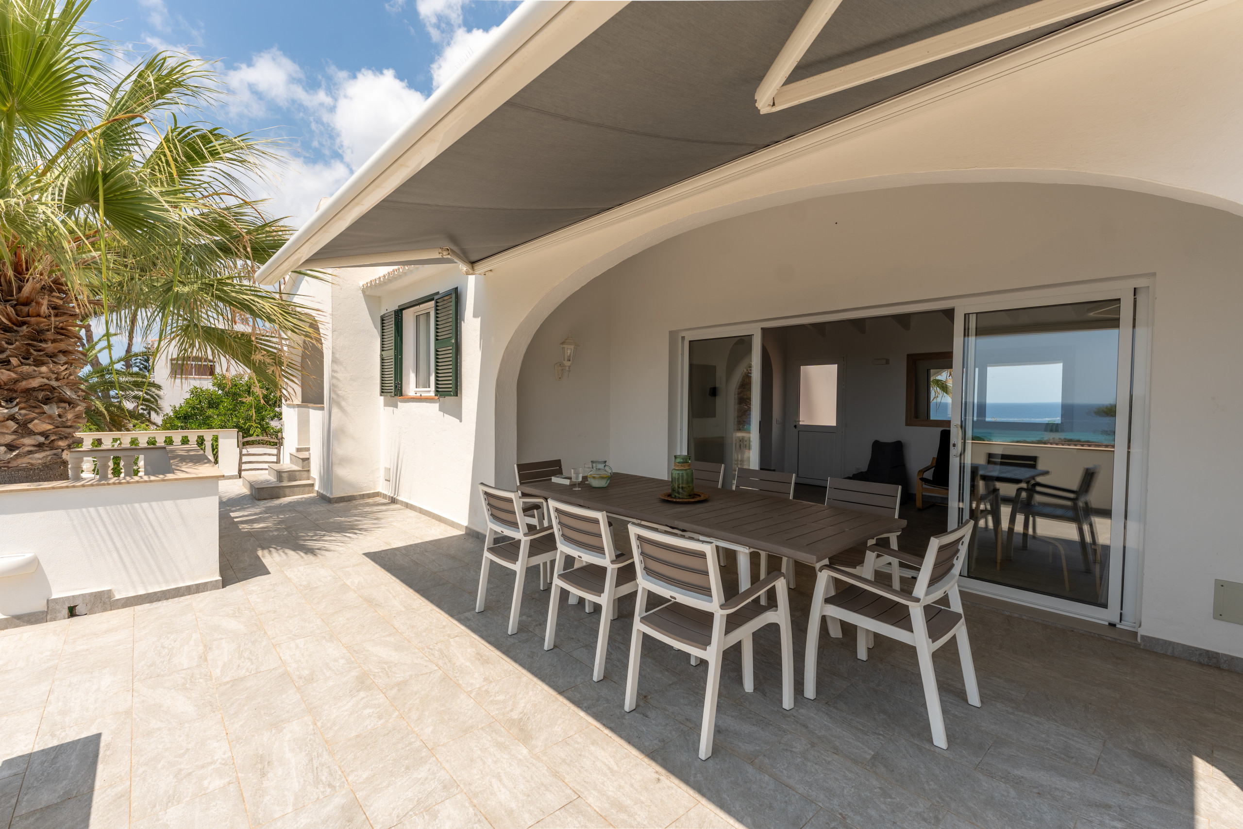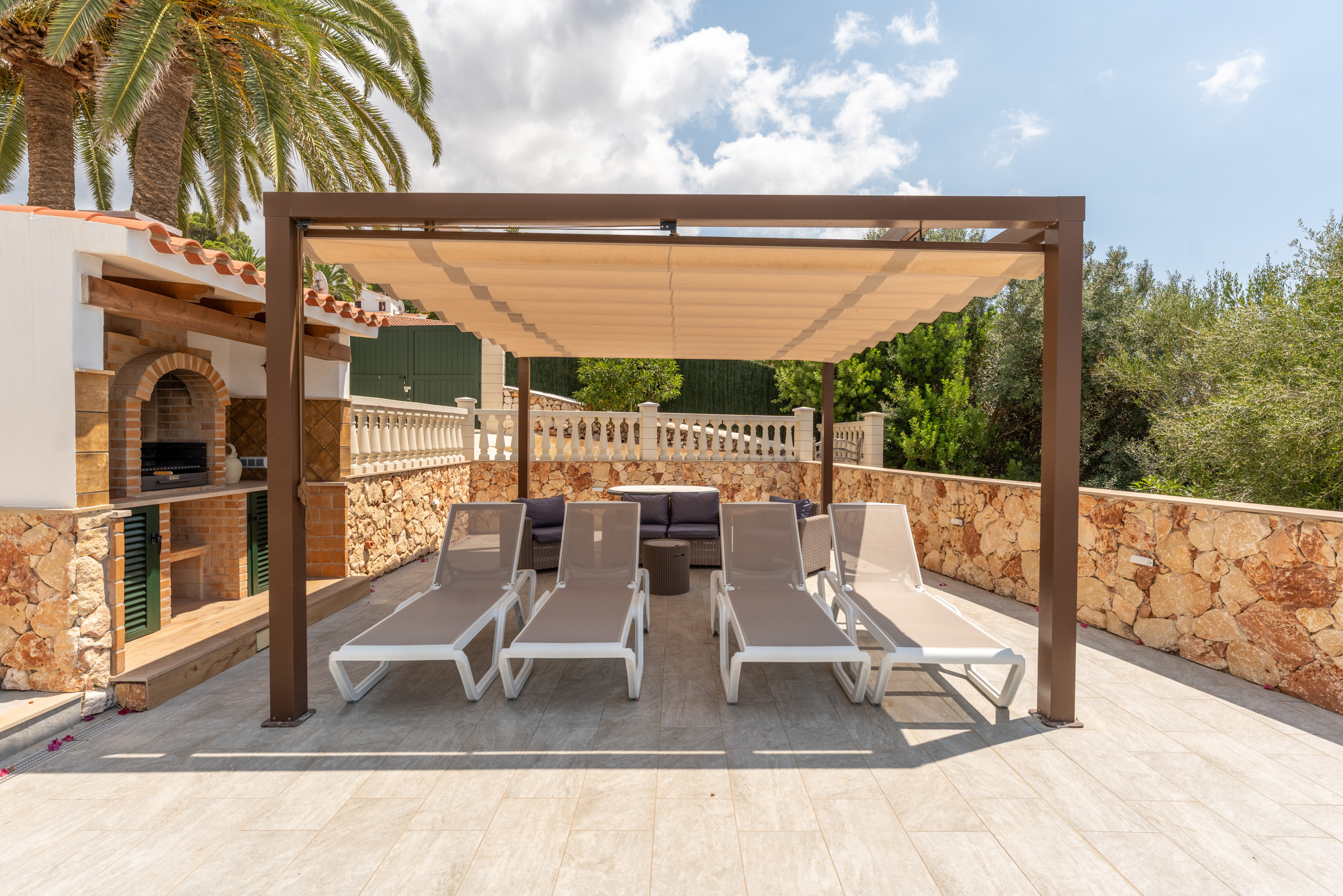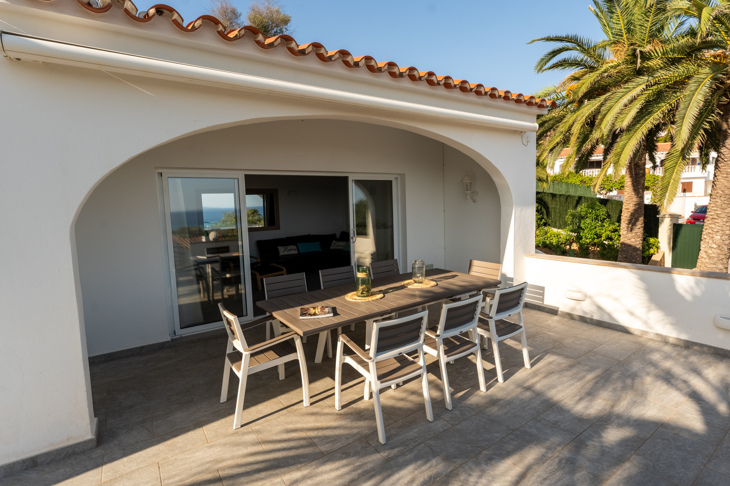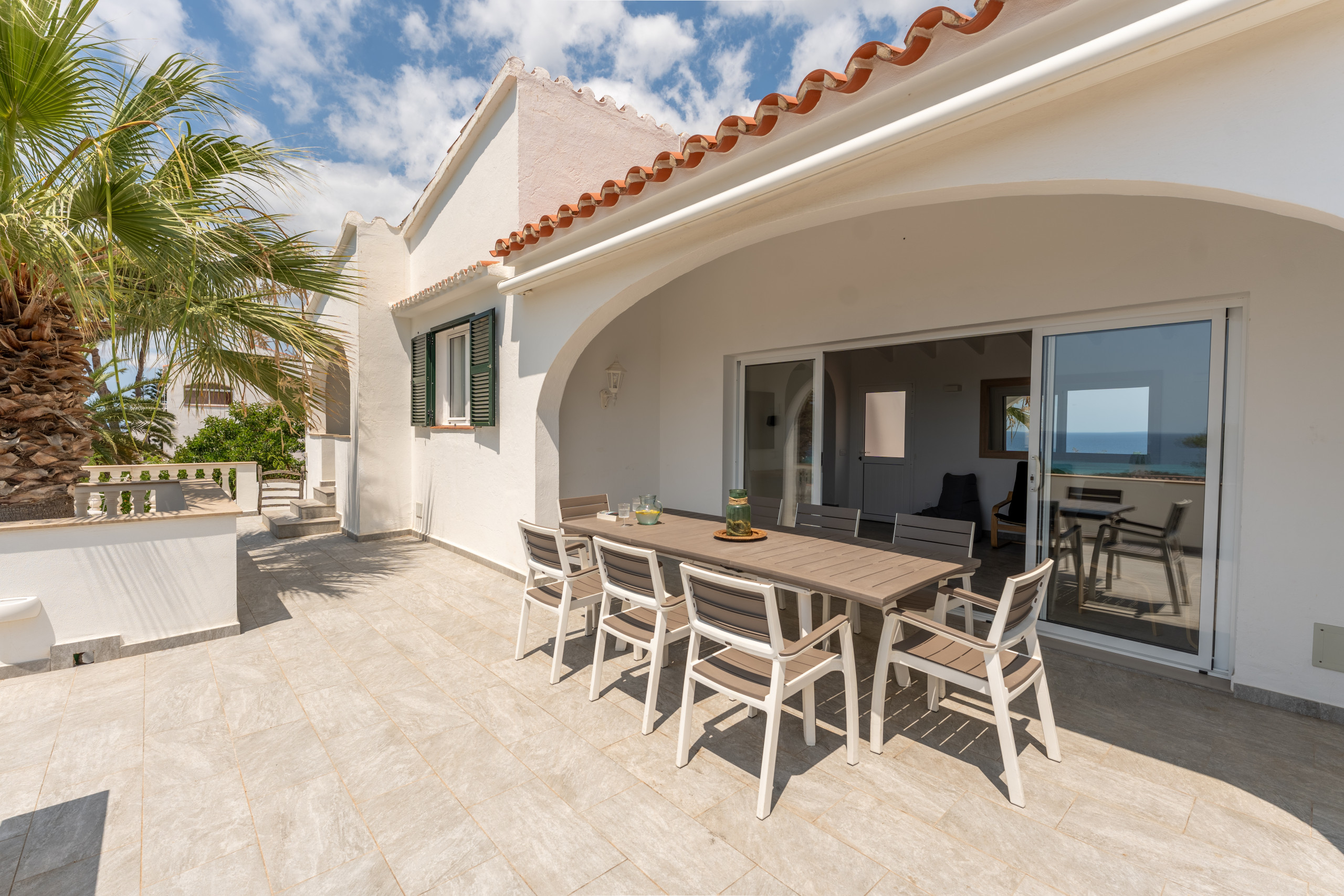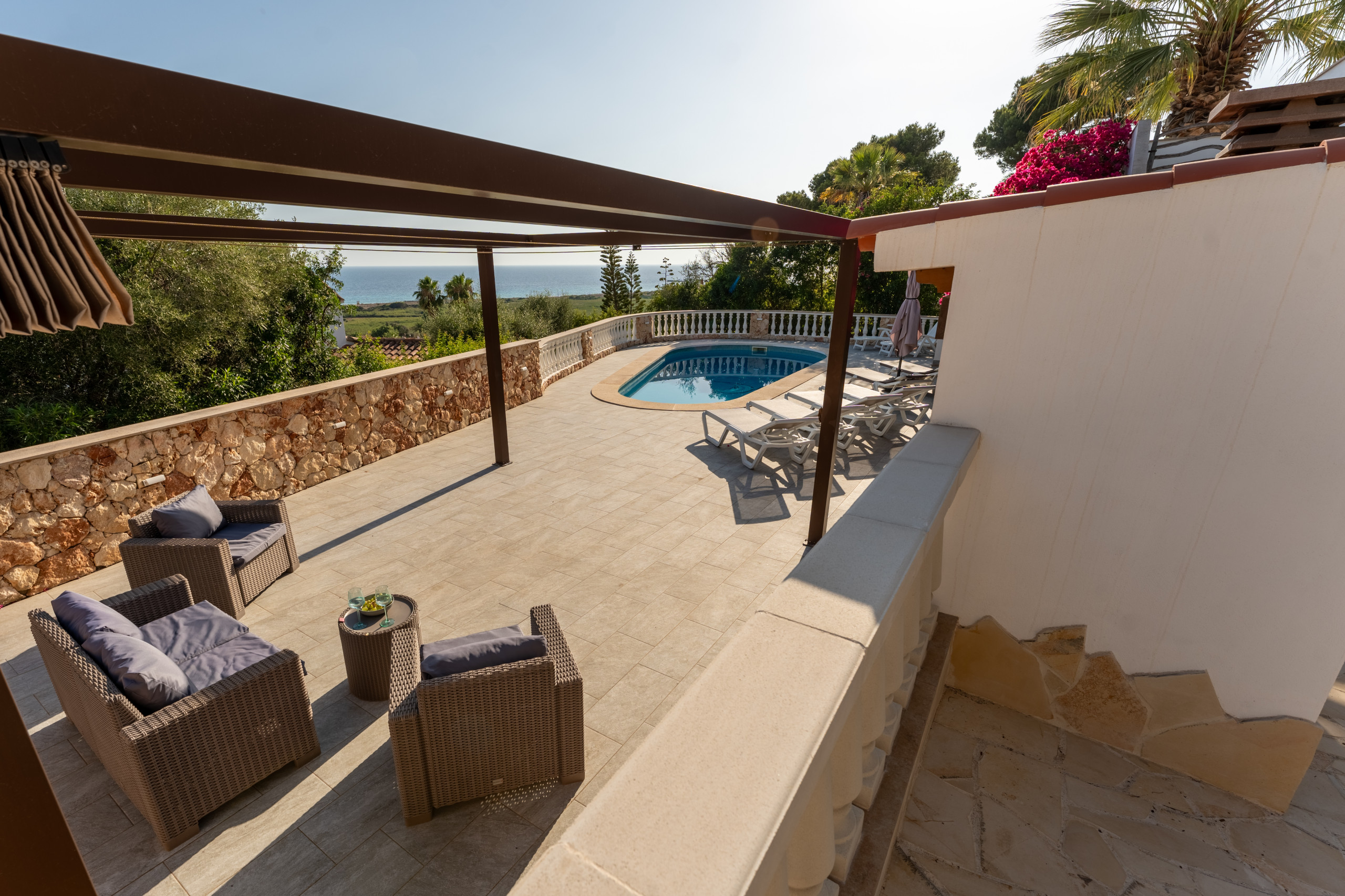 Nestled just 500 metres from the stunning Son Bou beach, this bright and tastefully furnished family villa offers an idyllic escape for up to 8 guests. Spread across 200 square metres of thoughtfully designed living space, this property promises a memorable Mediterranean holiday experience. It is about 10 minutes' walk to the beach. There are four bedrooms with a capacity for 8 people. Three bedrooms are on the first floor, sharing a shower room. On the floor below, at pool level, with a separate access, there is another bedroom and bathroom with bath and separate shower. The fourth bedroom cannot be accessed internally. For your added comfort, air-conditioning is provided in all the bedrooms. WIFI is included.