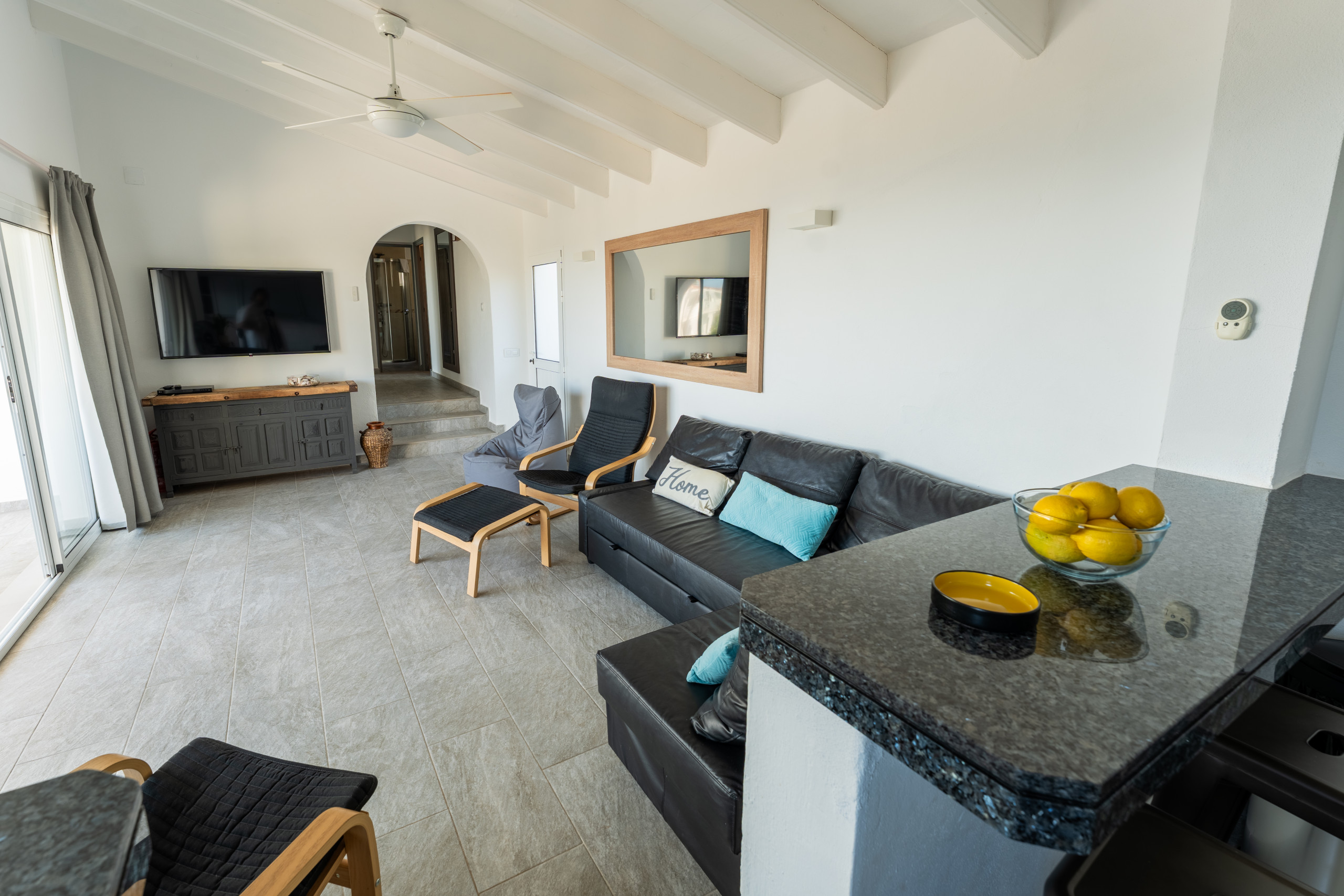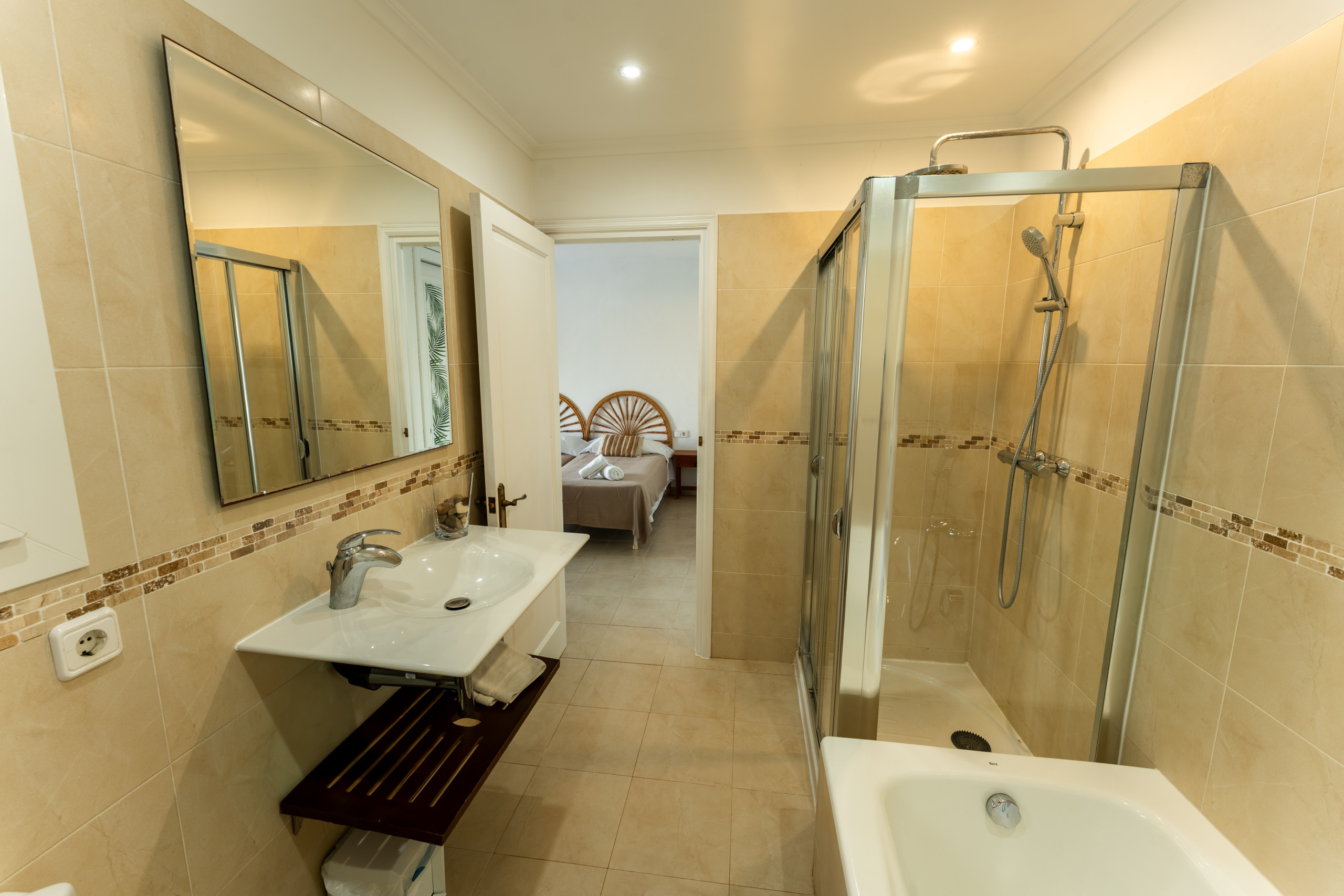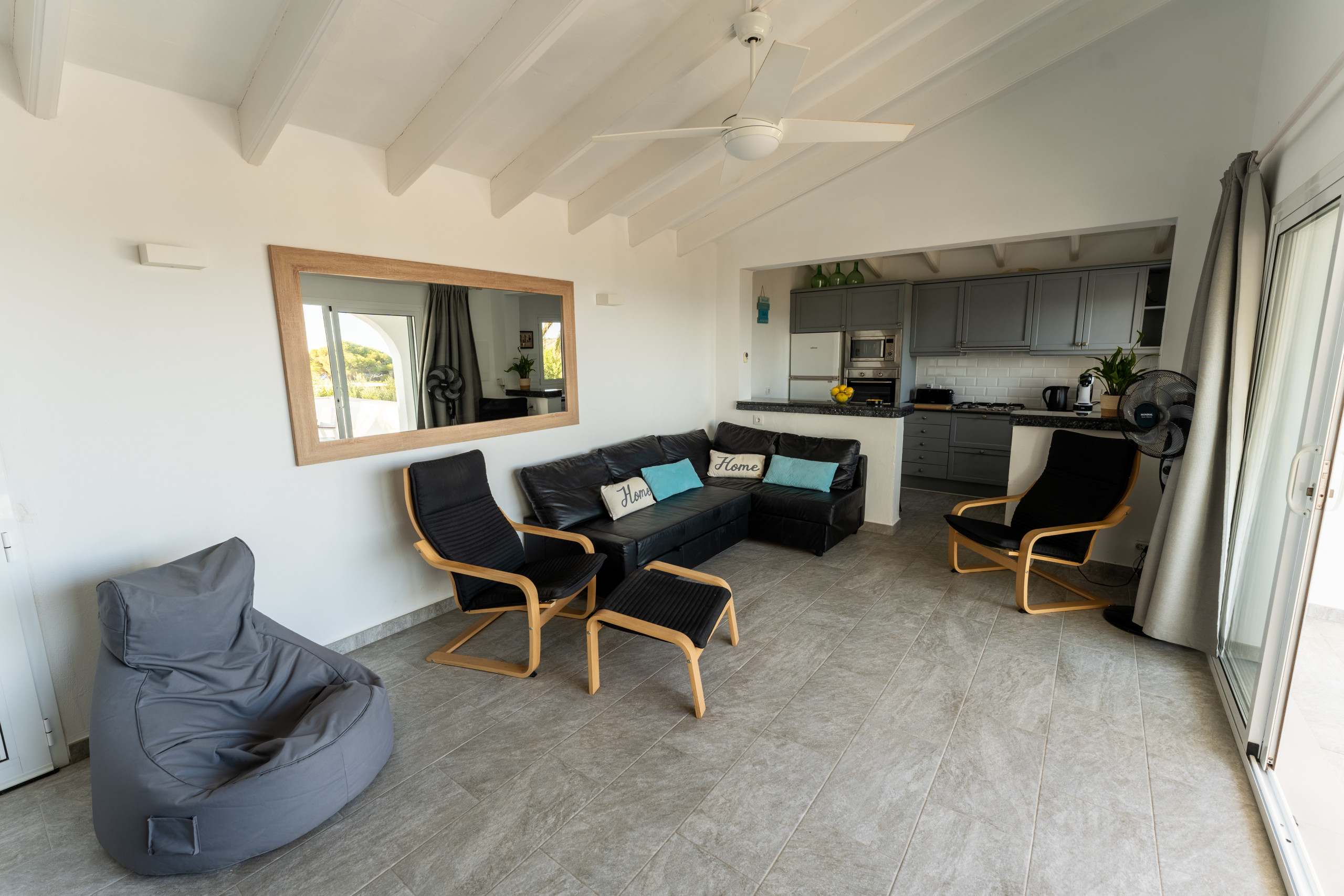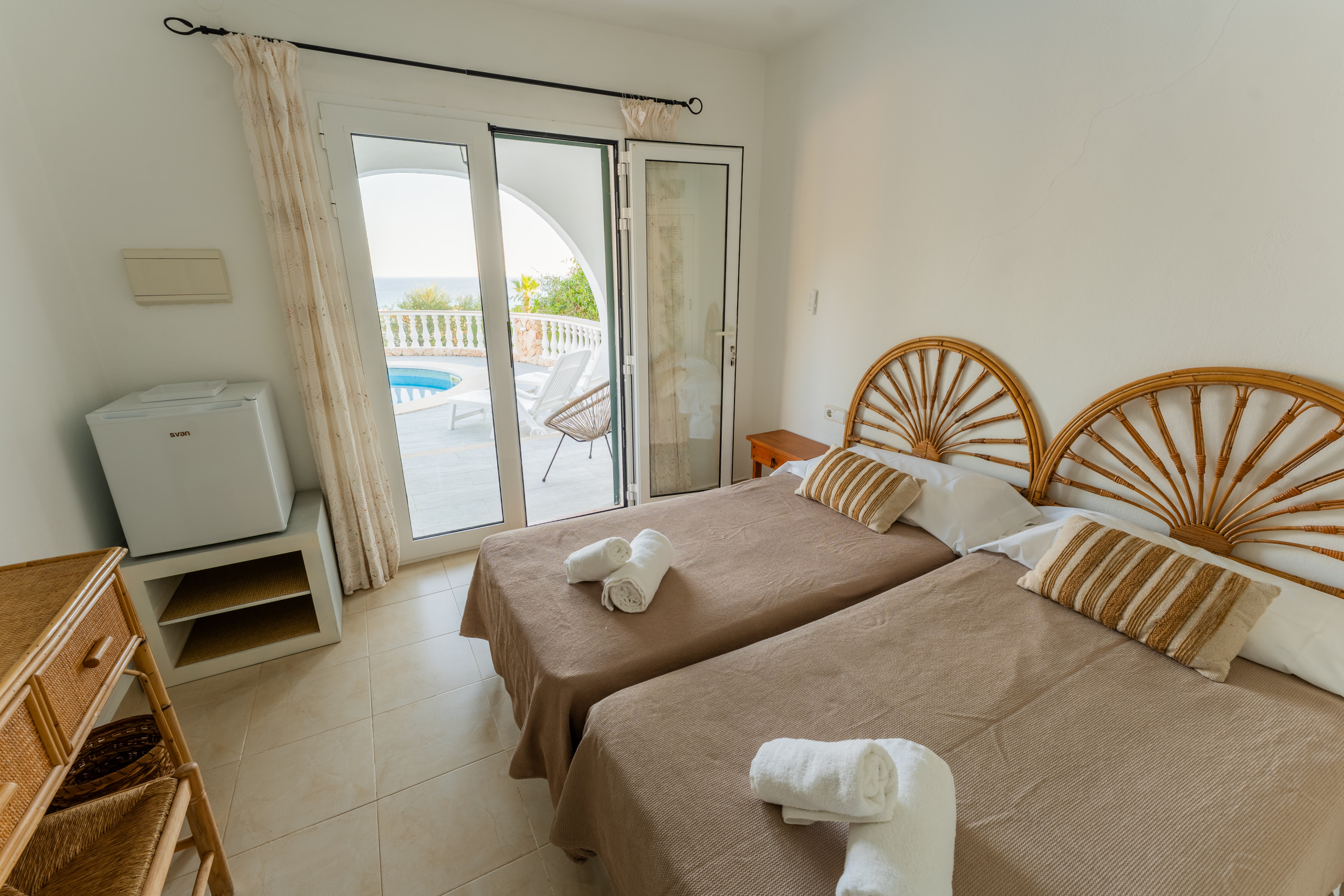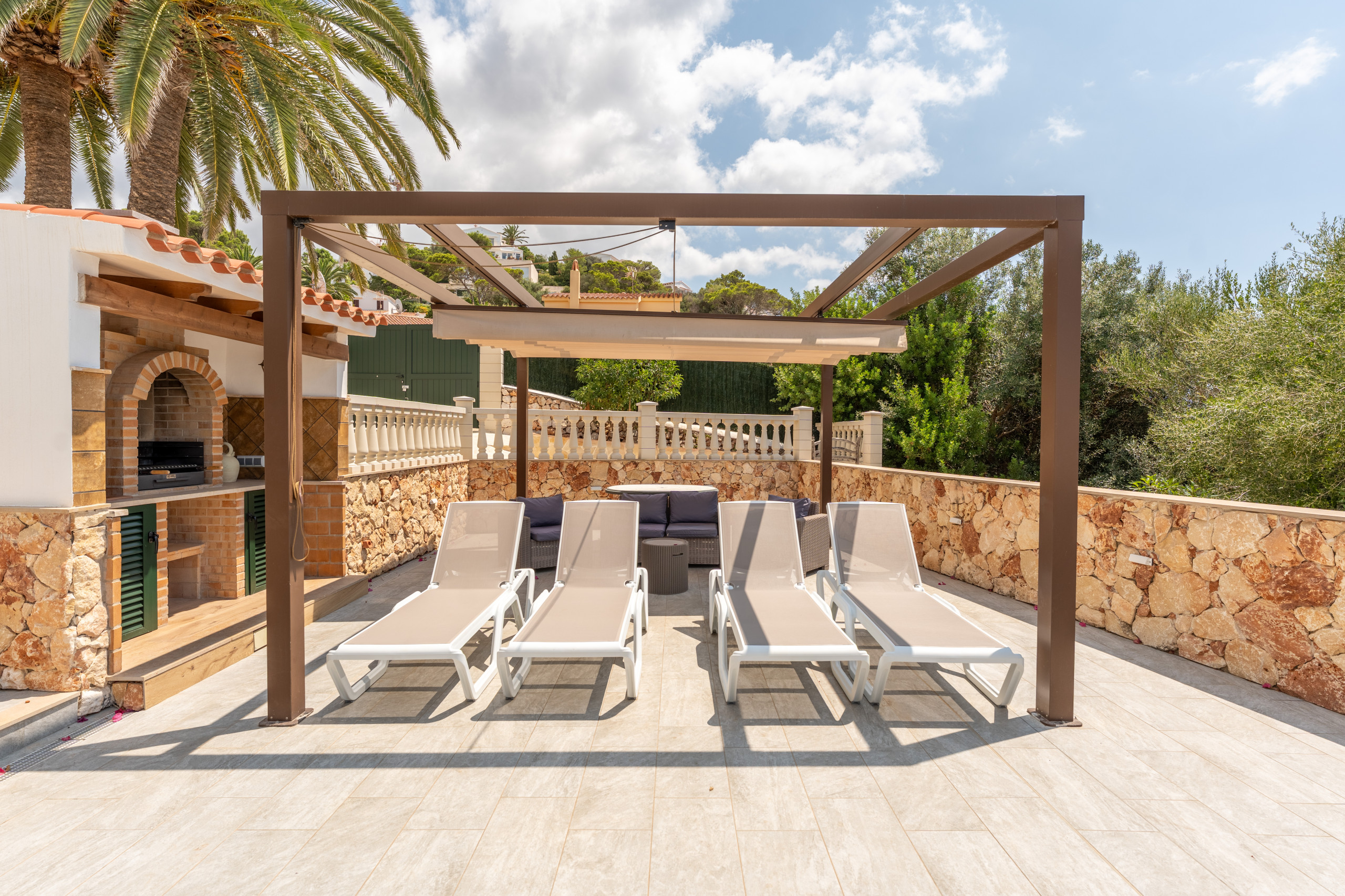 Nestled just 500 metres from the stunning Son Bou beach, this bright and tastefully furnished family villa offers an idyllic escape for up to 8 guests. Spread across 200 square metres of thoughtfully designed living space, this property promises a memorable Mediterranean holiday experience. It is about 10 minutes' walk to the beach. There are four bedrooms with a capacity for 8 people. Three bedrooms are on the first floor, sharing a shower room. On the floor below, at pool level, with a separate access, there is another bedroom and bathroom with bath and separate shower. The fourth bedroom cannot be accessed internally. For your added comfort, air-conditioning is provided in all the bedrooms. WIFI is included.