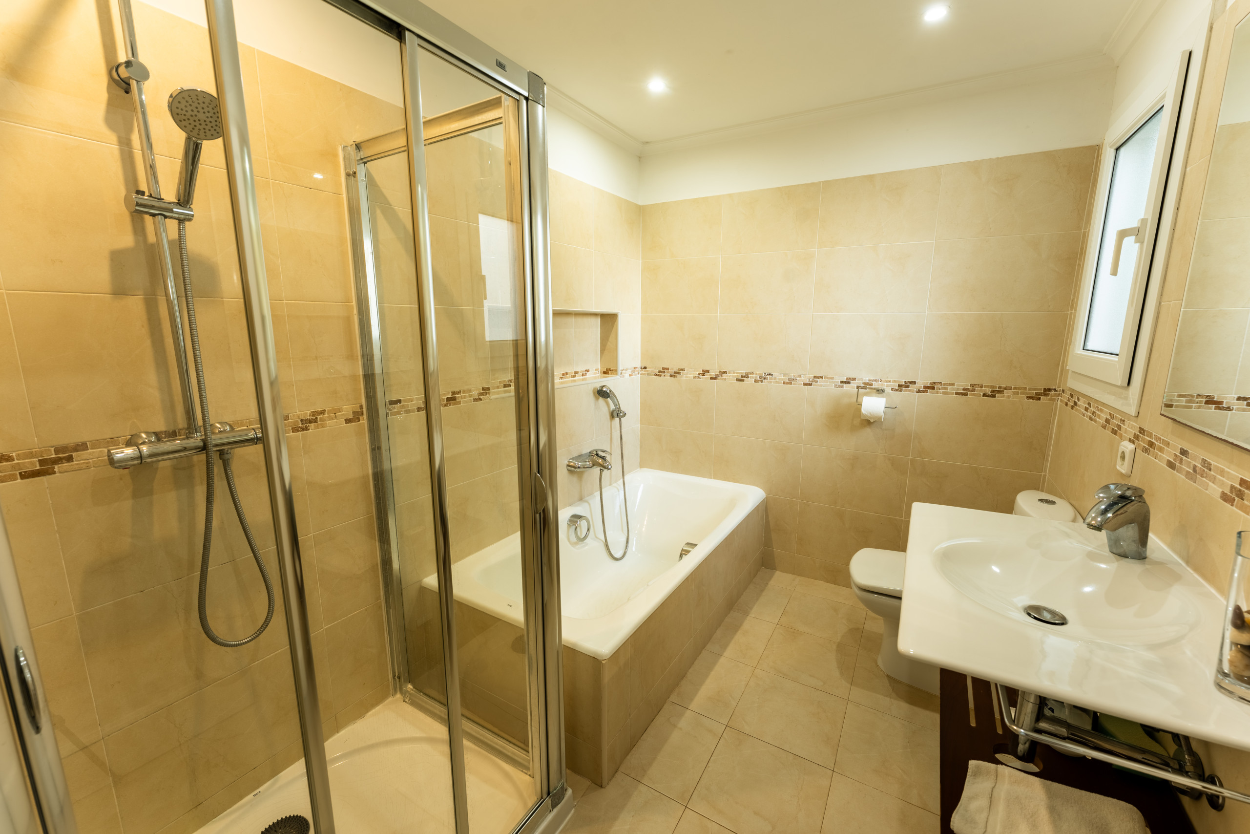 Bathroom with bath and separate shower